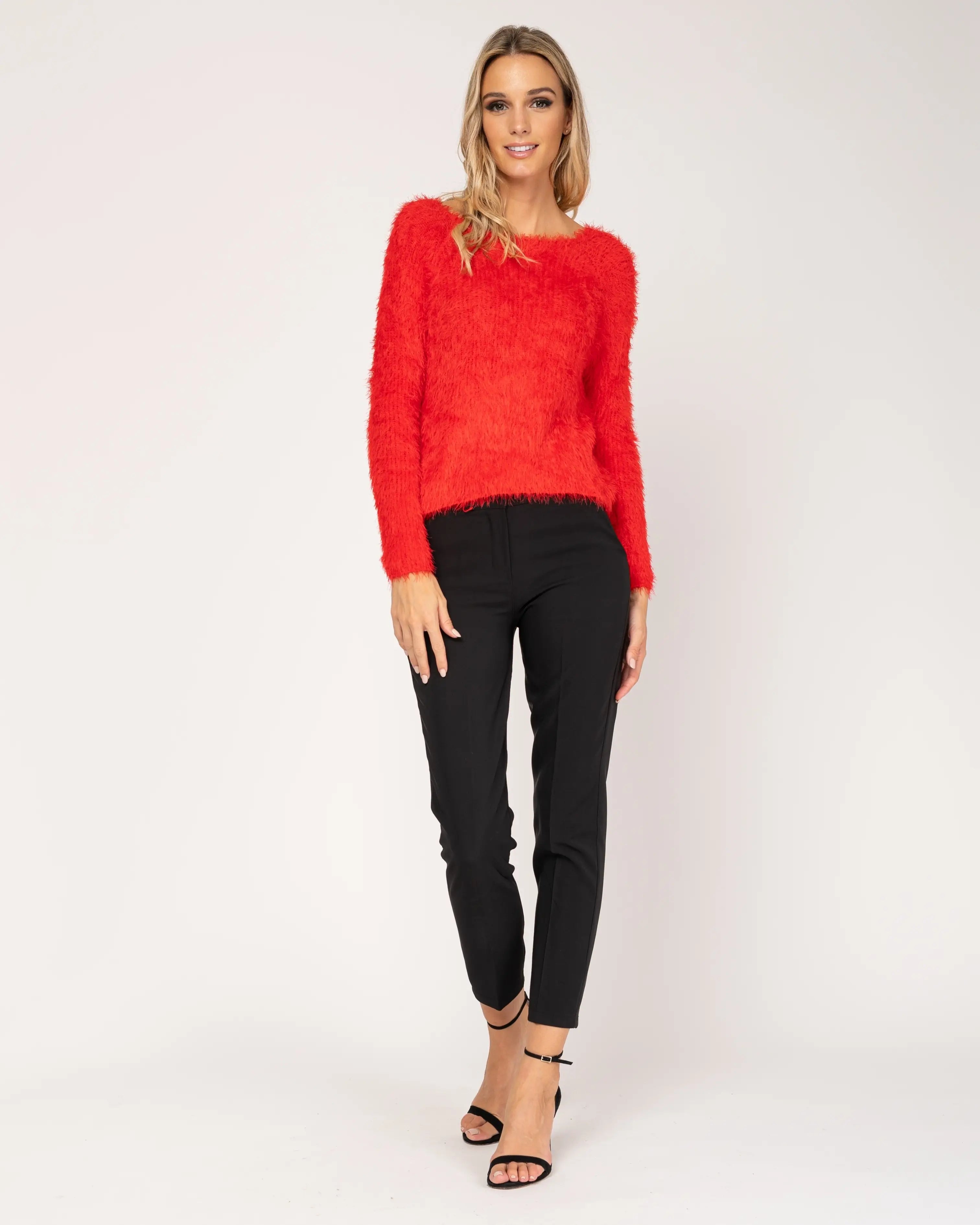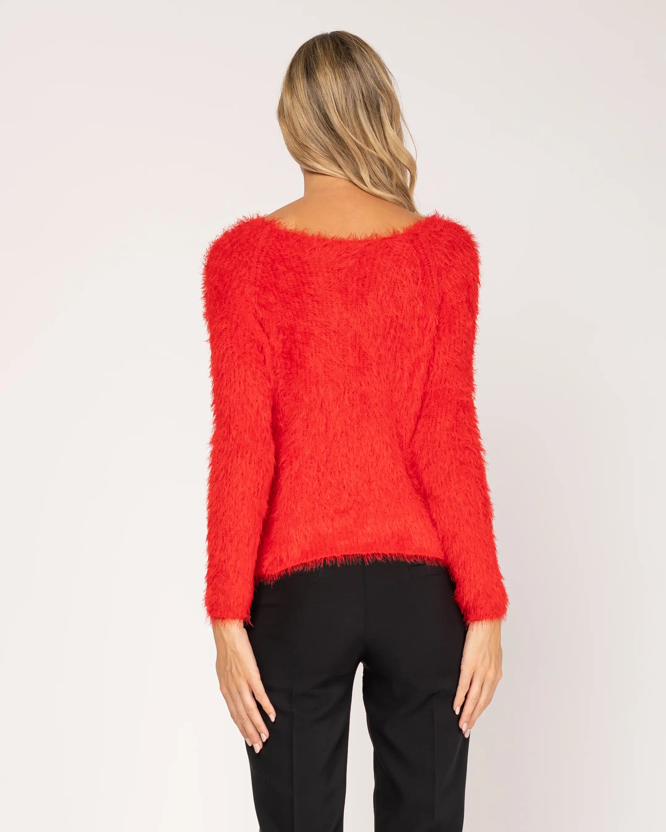 Long-sleeved knit sweater.
