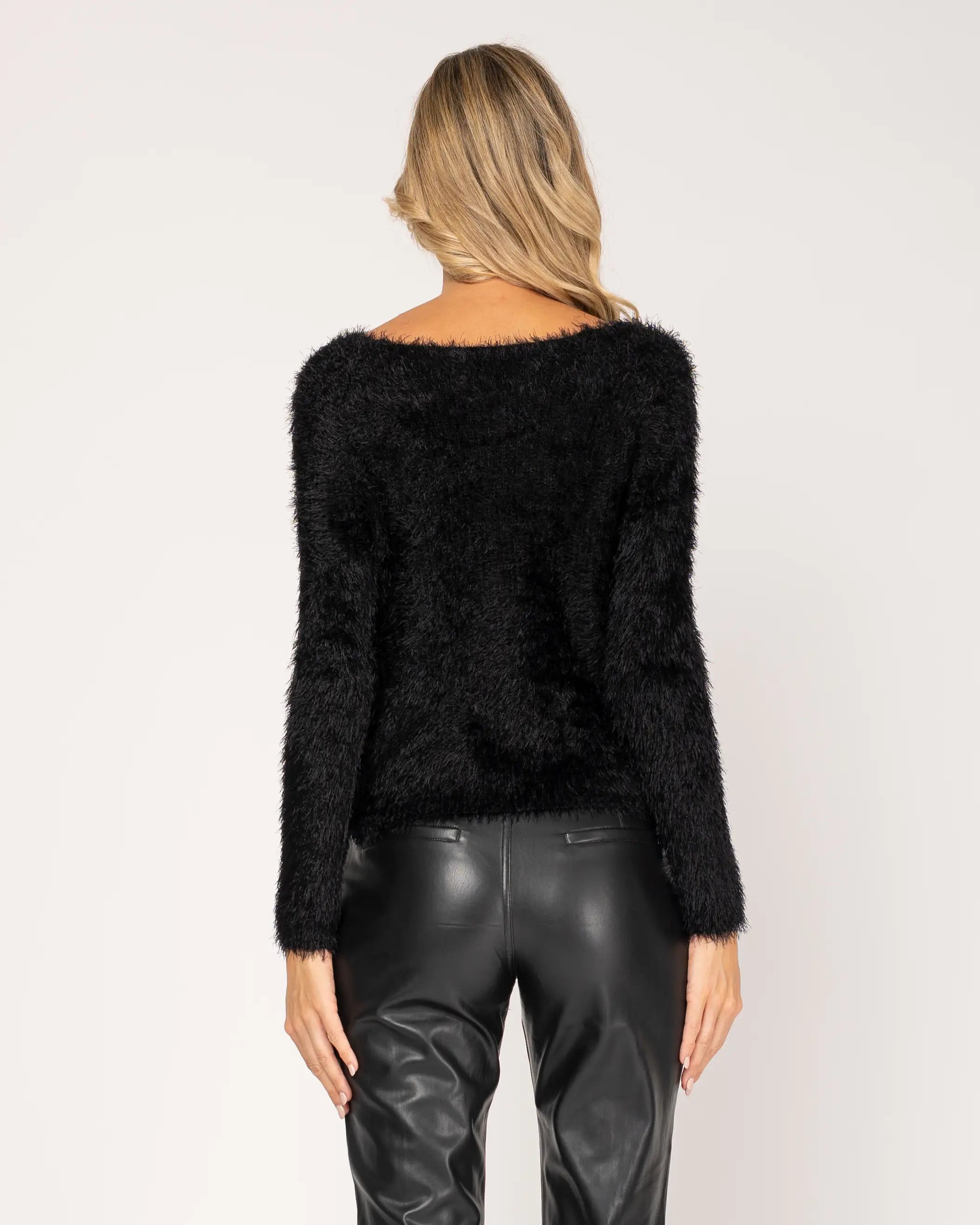 Long-sleeved knit sweater.