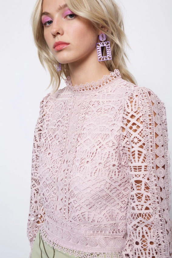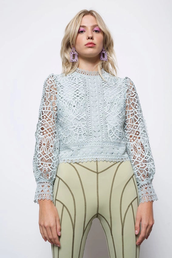 Lisa Blue Lace Embellished Mini Puffball Dress