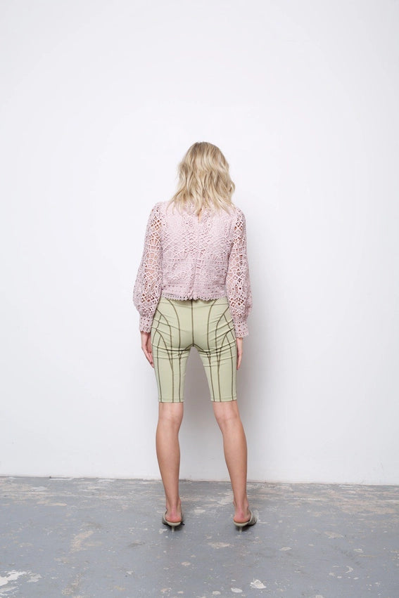 Lupe High Waist Metallic Knee Length Skirt Pink