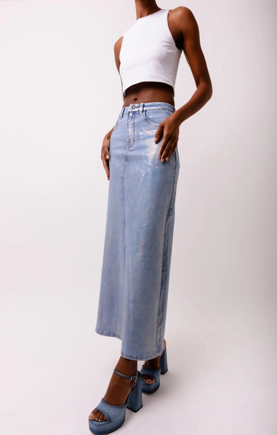 Lupe High Waist Metallic Knee Length Skirt Ice Blue-Skirts-Amy Lynn-S-Urbanheer