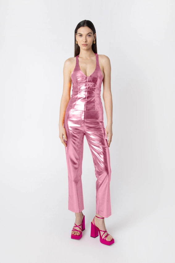 Lupe Metallic Faux Leather Slim Fit Pants