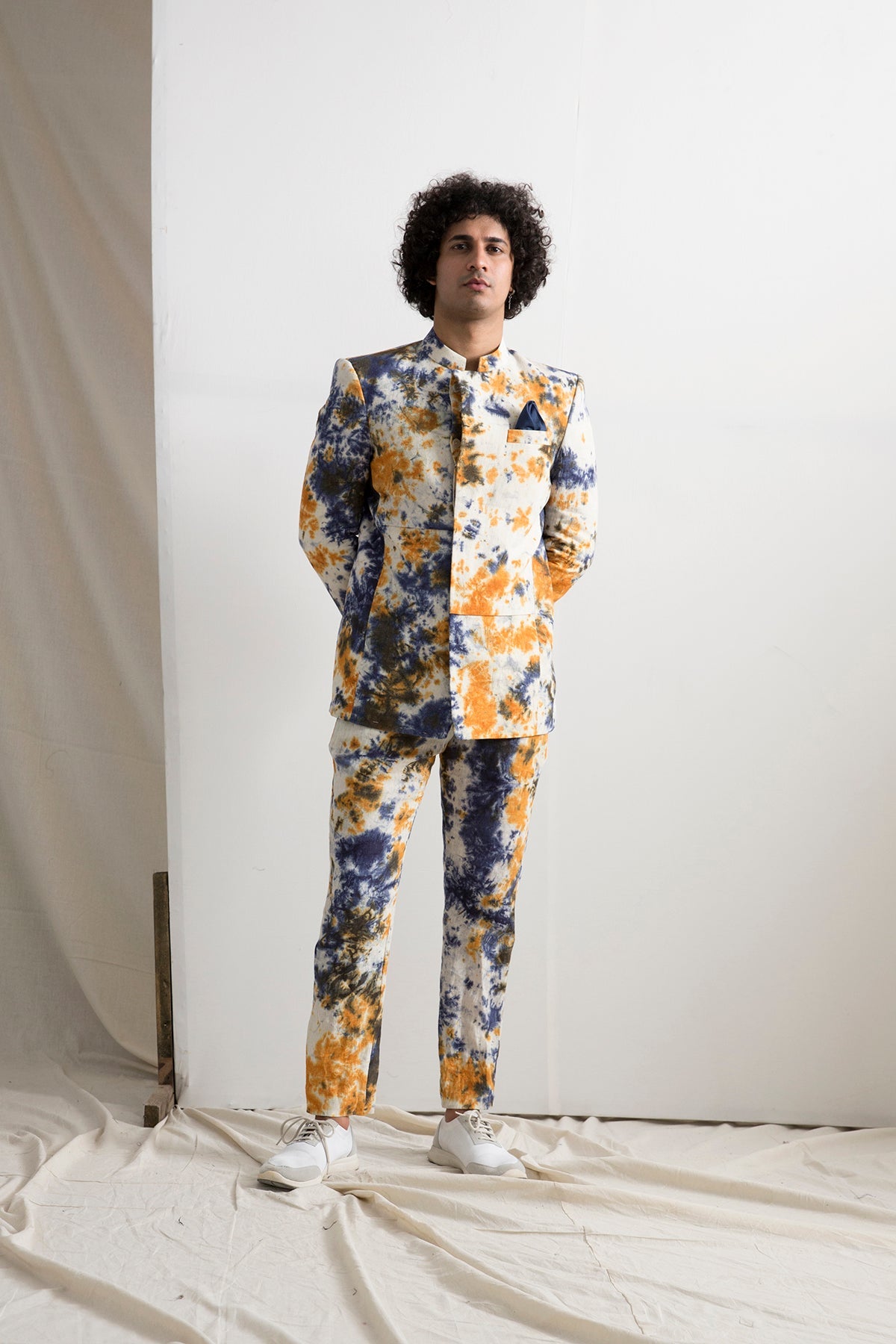 Minette - Tie & Dye Indo Western Bandhgala Jacket With Pant Set