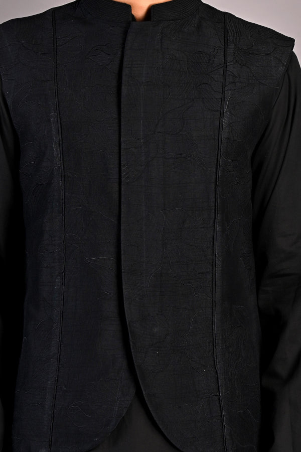 Niruha - Black Chikankari Open Jacket Set-Bohame-XS-5'-5'4"-Black-Urbanheer