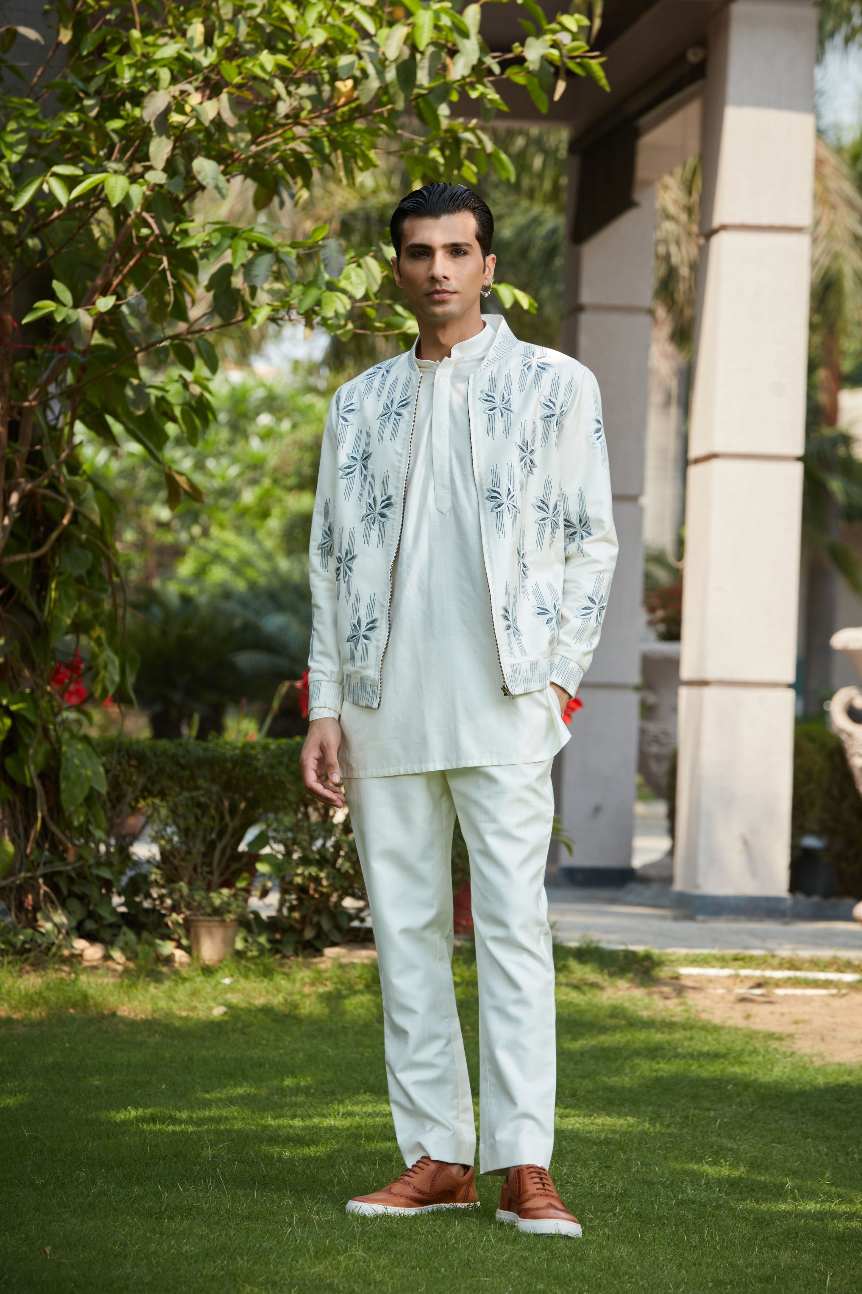 Shahid Kapoor In Our - Off-White Bomber Jacket With Kurta & Pant Set-Biker Jacket Set-Bohame-XS-5"-5'4"-Urbanheer