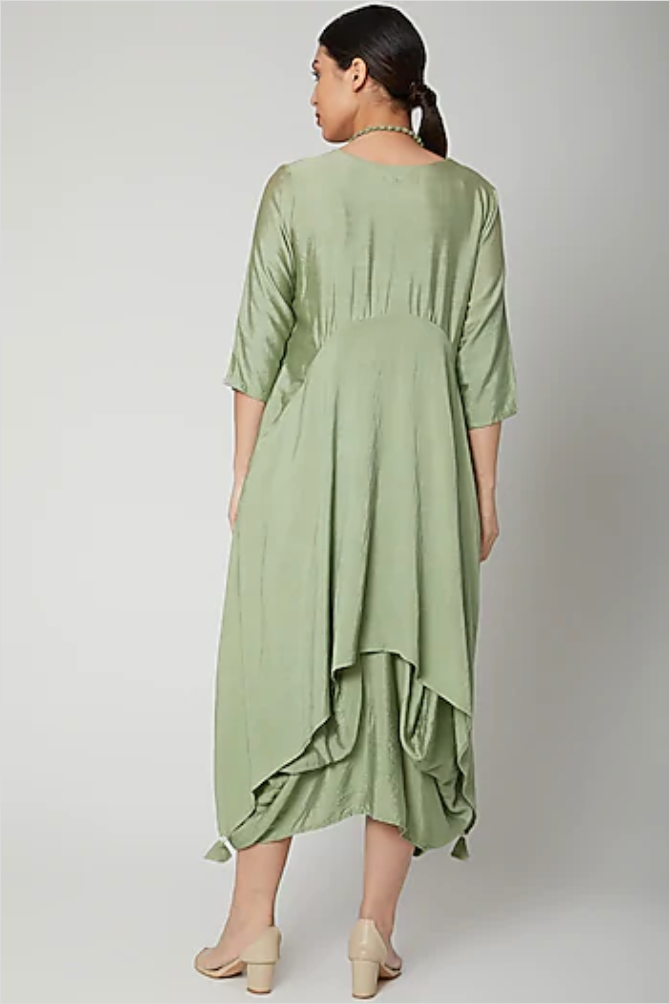 Dream- Mint Green & Off White Indo-Western Cowl Dress-Dress-Bohame-XS-Urbanheer