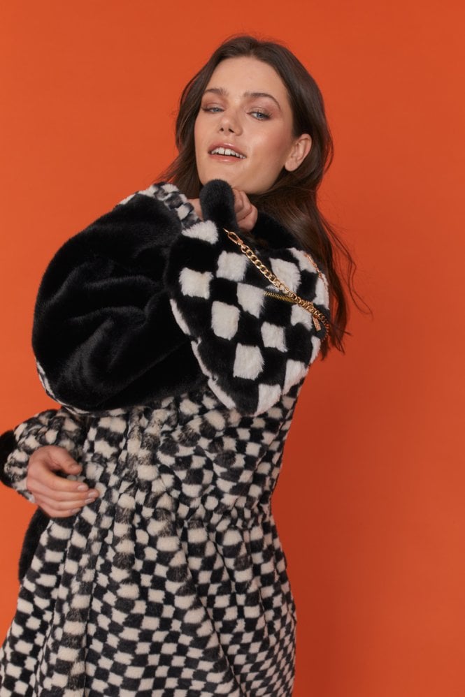 Pink Eco Bamboo Faux Fur Coat with Love Heart Detailing