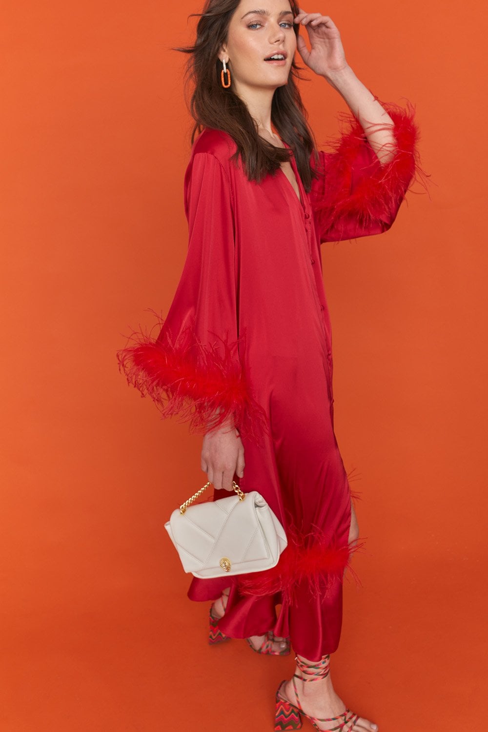 Orange Faux Suede Trench Coat with Faux Fur Collar and Cuffs