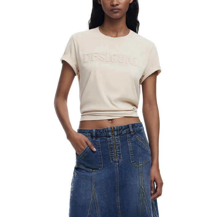 DESIGUAL WOMEN'S SHORT STUDIO SLEEVE T-SHIRT WHITE