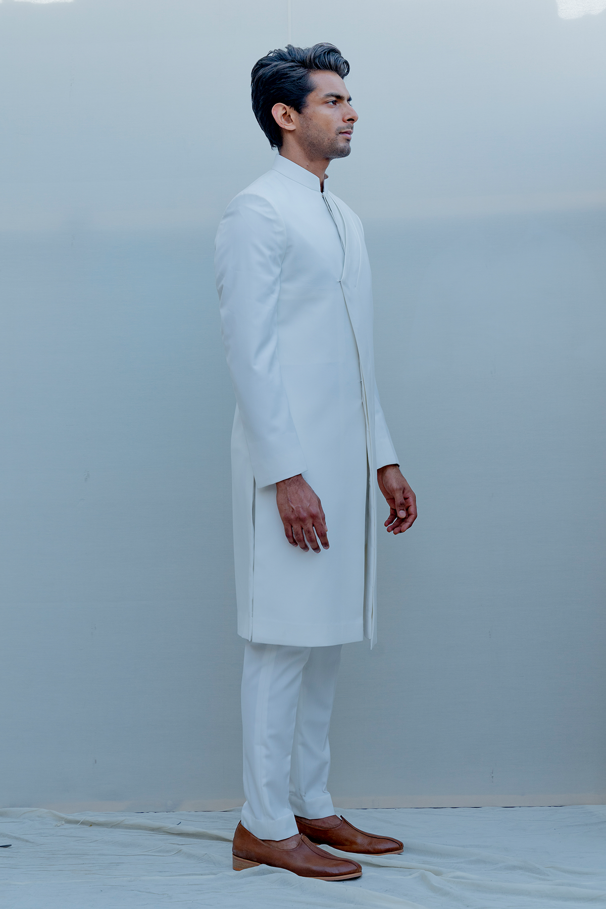 Embellished Kaftan Dhoti Pant Set In Off-White