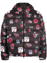 Ea7 Multicolor Logo-Print Hooded Puffer Jacket