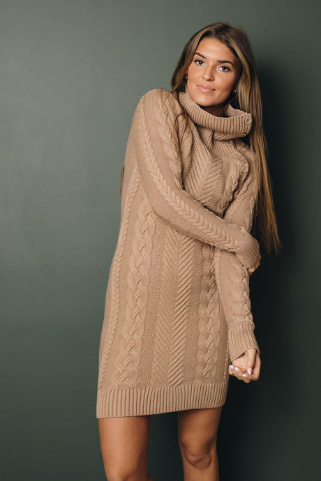 Viscose Blend Knitted Maxi Sweater Dress ALMOND-Dress-In Loom-S-Urbanheer