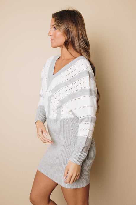Contrast Color Knit Mock Neck Sweater Dress GREY / NAVY-Dress-FATE-S-Urbanheer