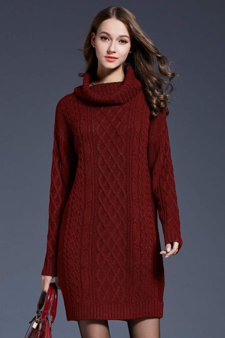 Contrast Color Knit Mock Neck Sweater Dress BERRY / PINK-Dress-FATE-S-Urbanheer