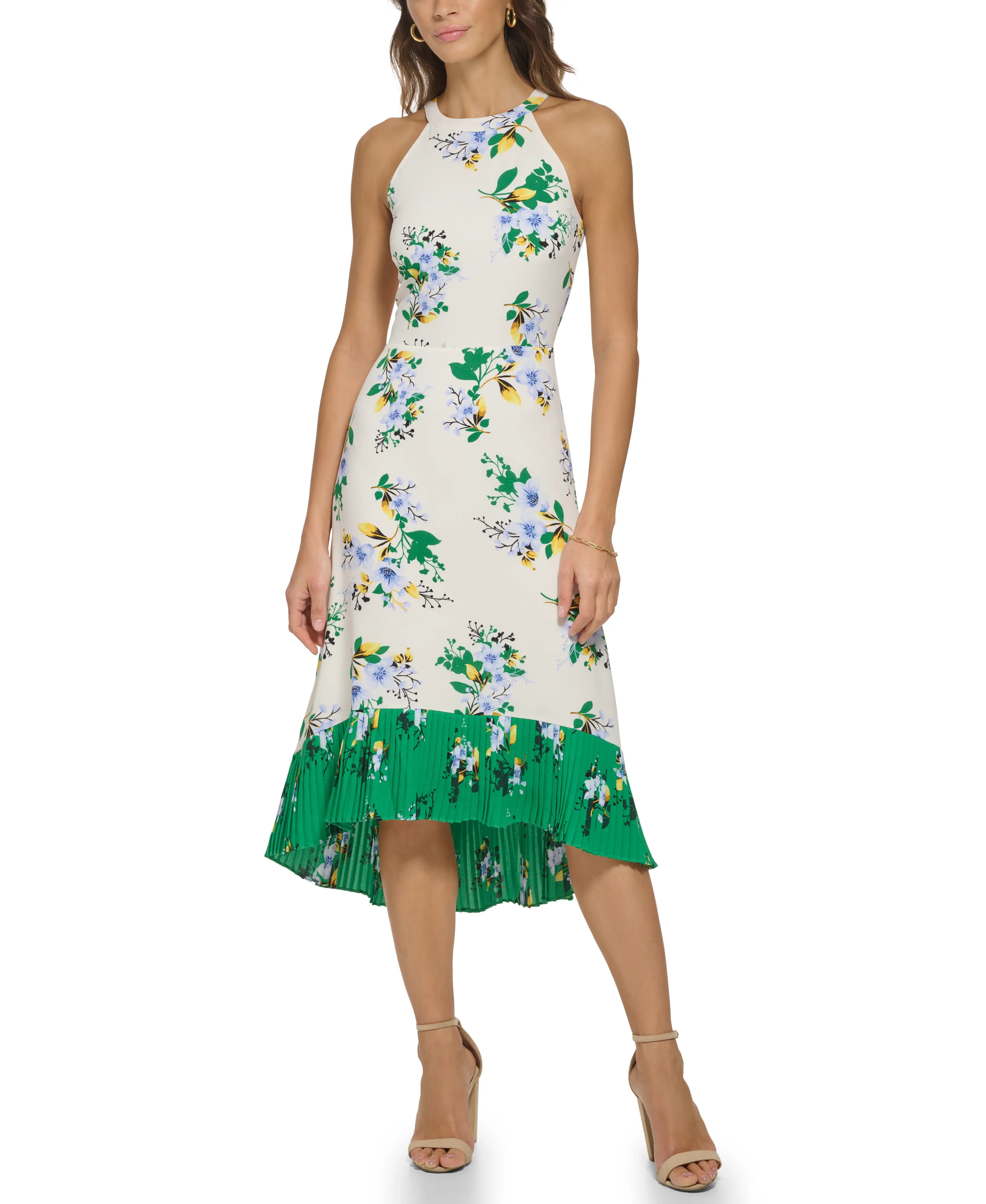 Color Block Floral Printed Halter Midi.-KENSIE-0-Urbanheer