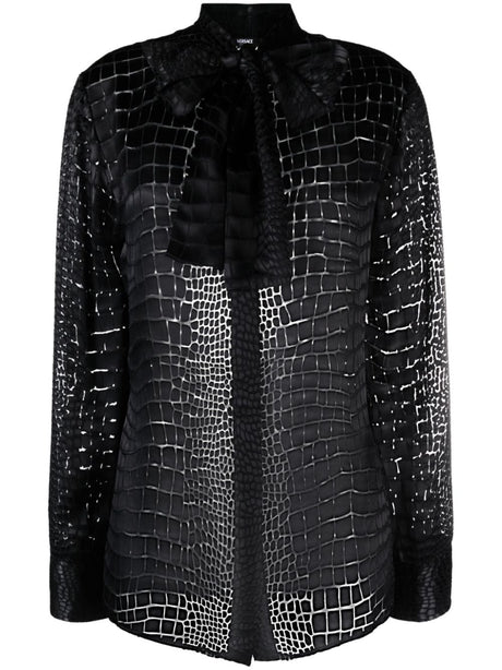 Versace Black, Devoré Effect, Satin Finish Blouse