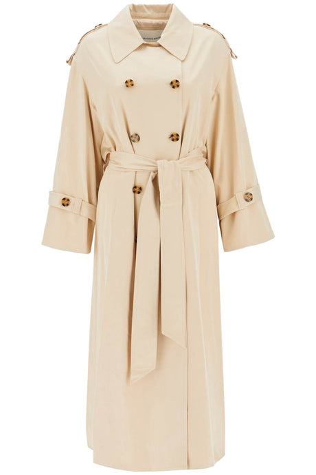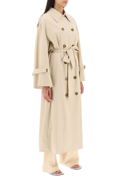 Extra-Long Oversized Cotton Trench Coat with Belt Beige