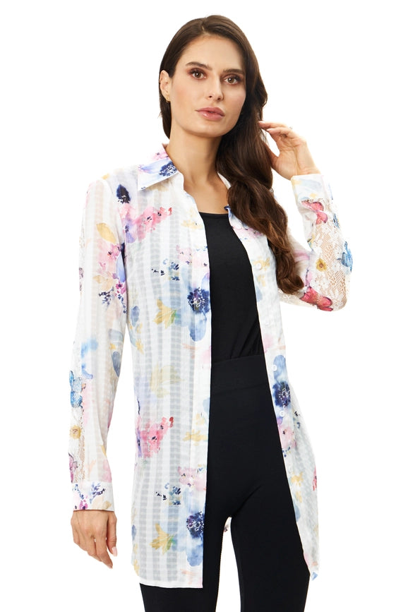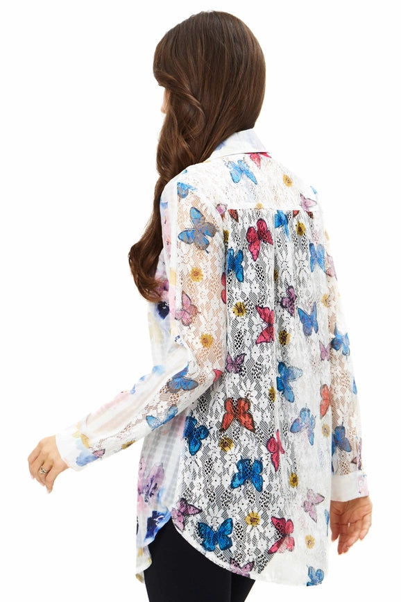 Adore Longline Sheer Velvet Polka Dot Shirt