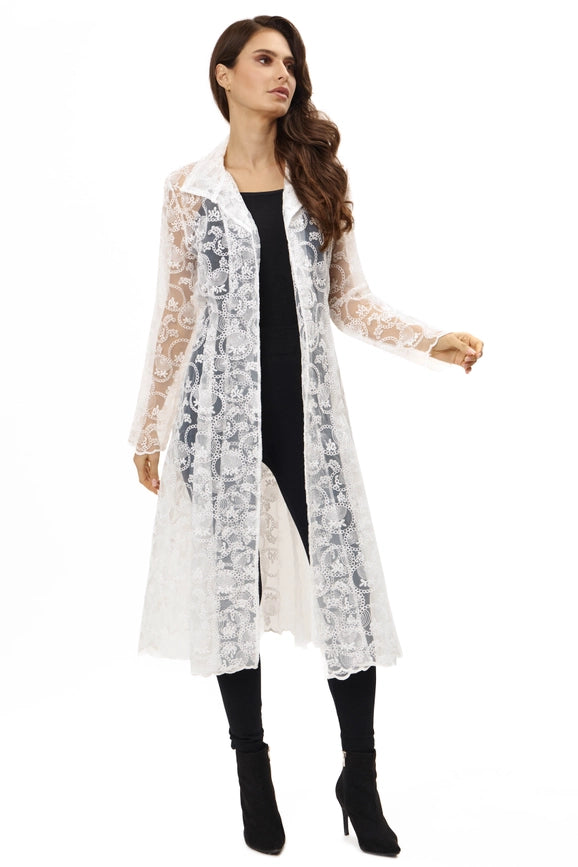 Adore Velvet & Sheer Lace Longline Jacket – Noir Elegance