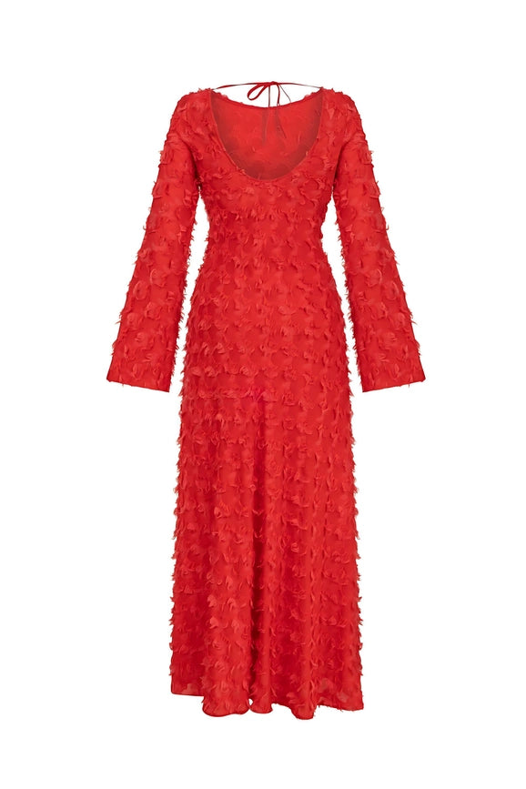 Backless Long Sleeve Maxi Dress-Dress-NOCTURNE-XS-Red-Urbanheer