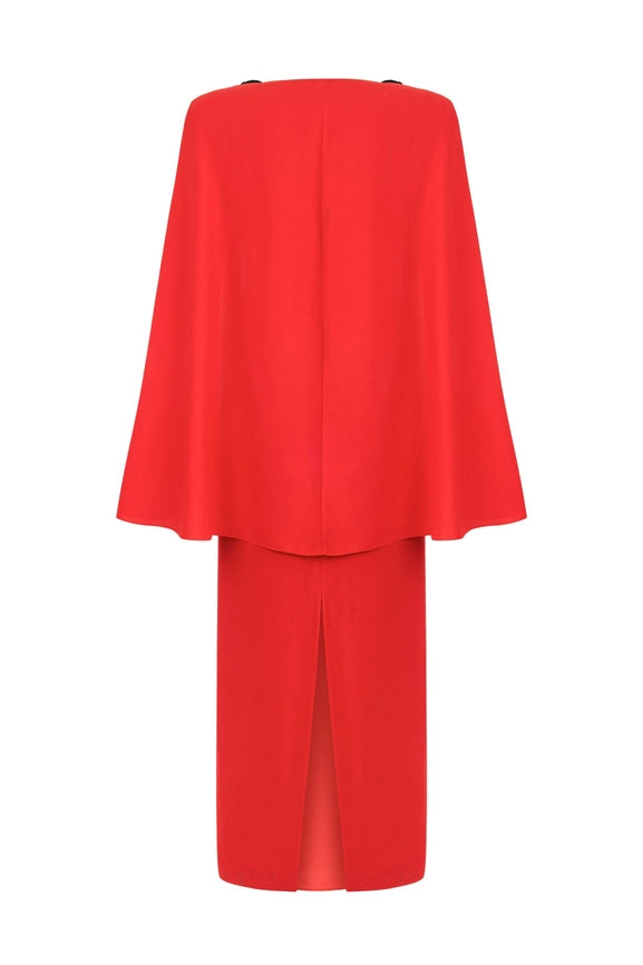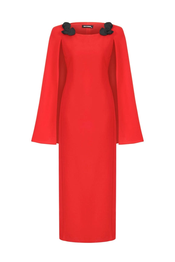 Cape Sleeve Maxi Dress-Dress-NOCTURNE-S-Red-Urbanheer