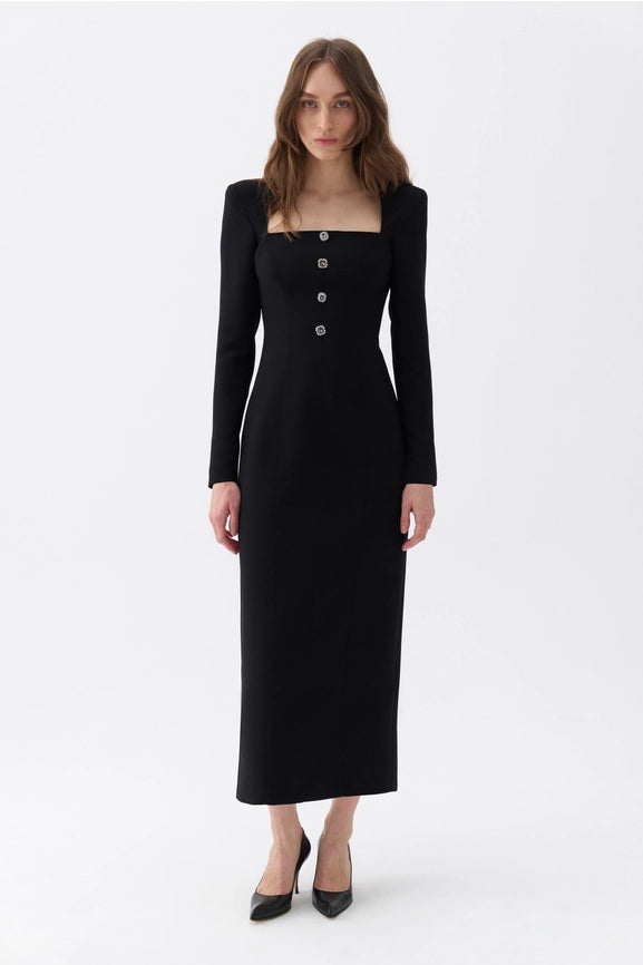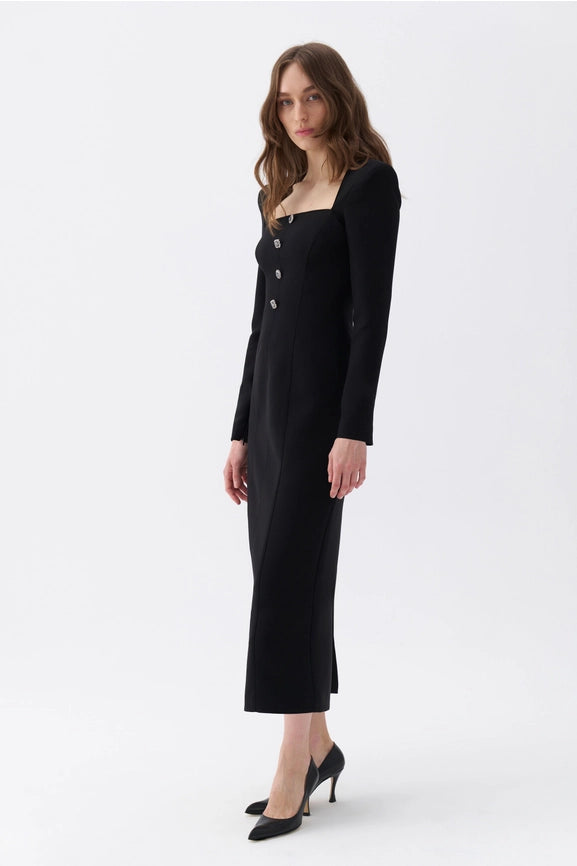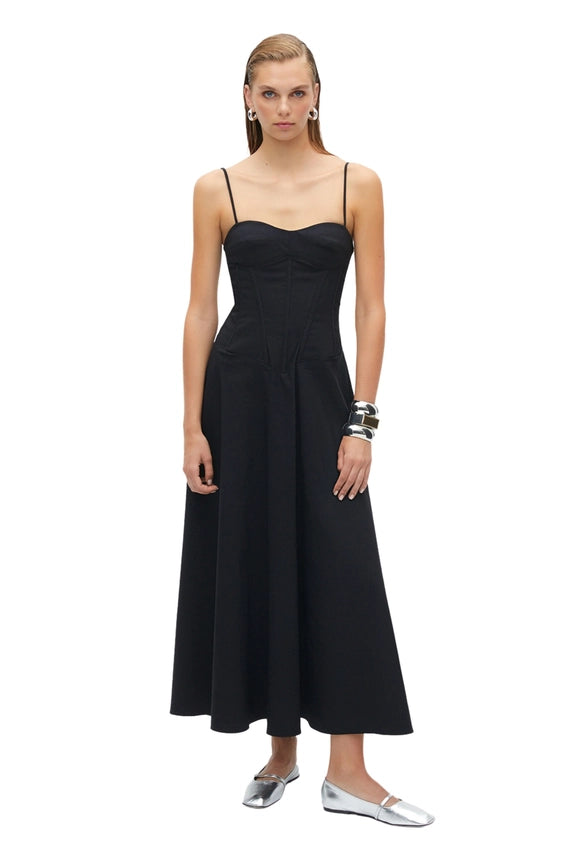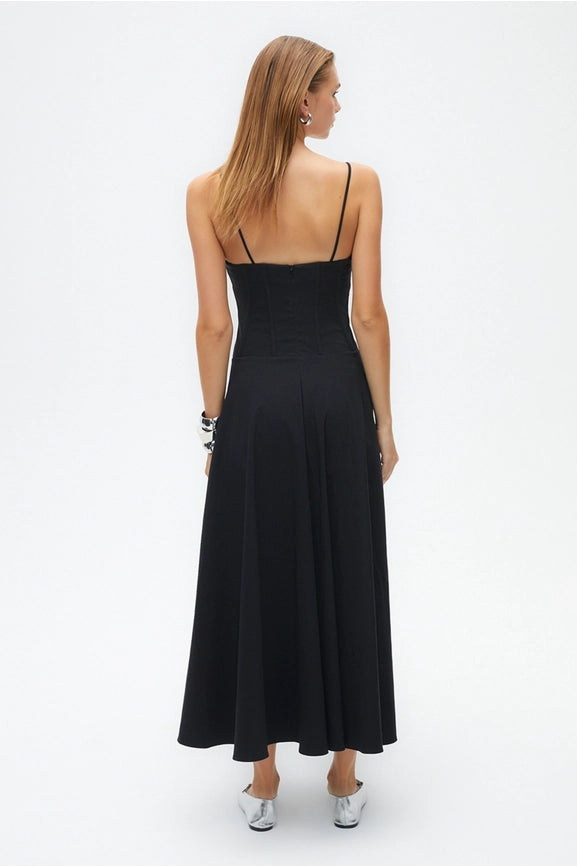 Corset Detailed Midi Dress-Dress-NOCTURNE-XS-Black-Urbanheer