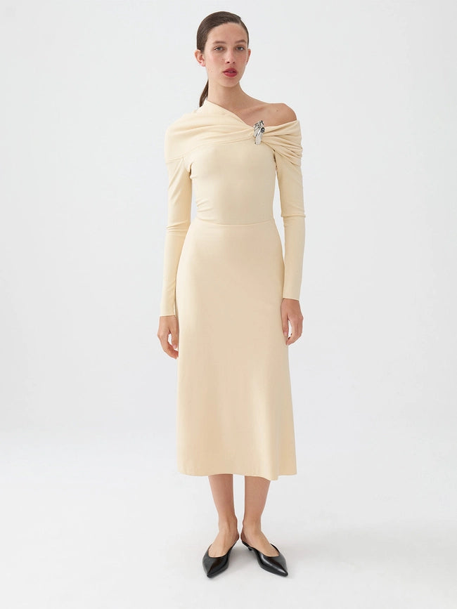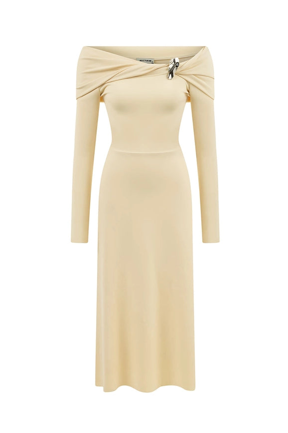 Cut-Out Detailed Maxi Dress-Dress-NOCTURNE-XS-Off-white-Urbanheer