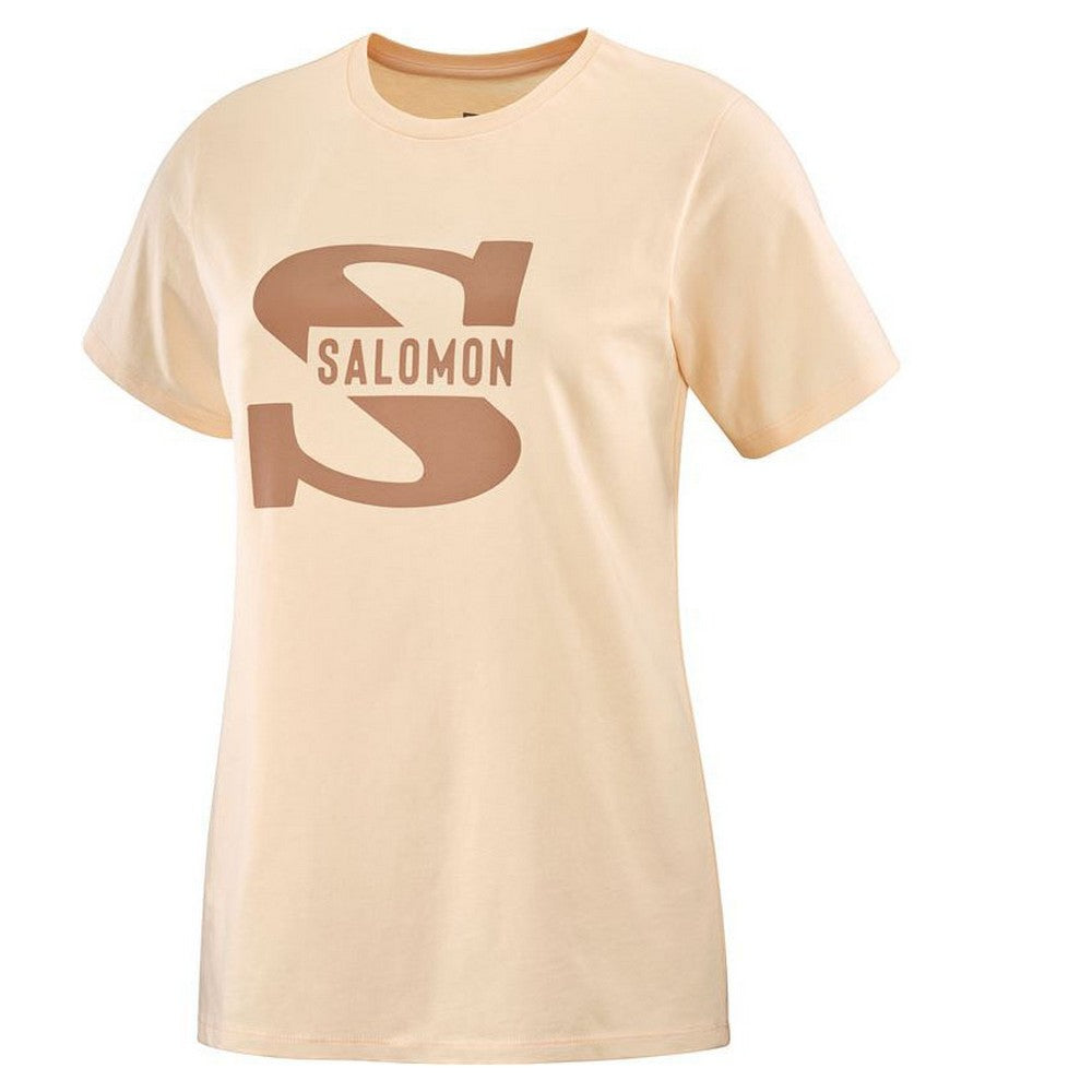 Men’s Short Sleeve T-Shirt Salomon Big Logo Nude Beige Brown