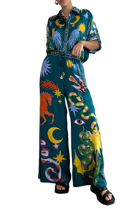 Vintage Print Shirt Shorts Casual Two-Piece Set