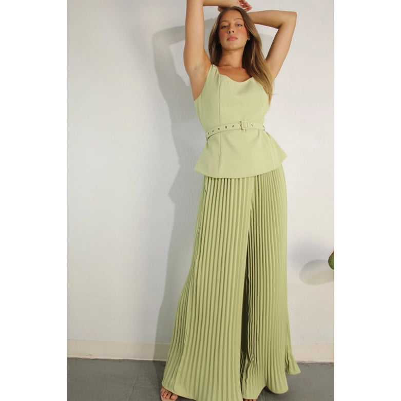 2 Tops and Pants Belt Set APPLE GREEN