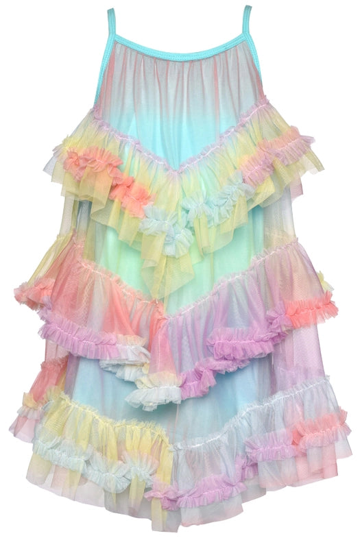 Elevate your little one's style with our 3 Tiered Ruffle Rainbow Tutu Dress. This pastel tie dye mesh dress is perfect for Spring and Summer, keeping your child cool and comfortable during outdoor activities. With its eye-catching design, your fashionista will surely turn heads. Don't miss out on this must-have dress!