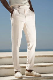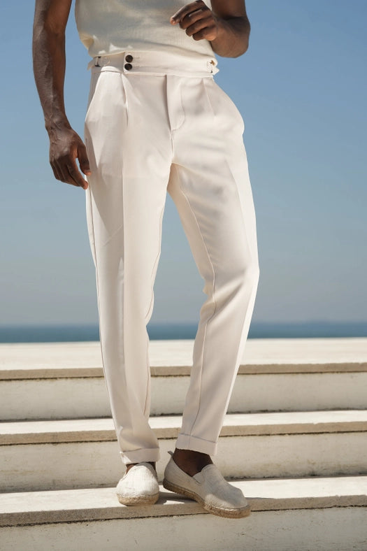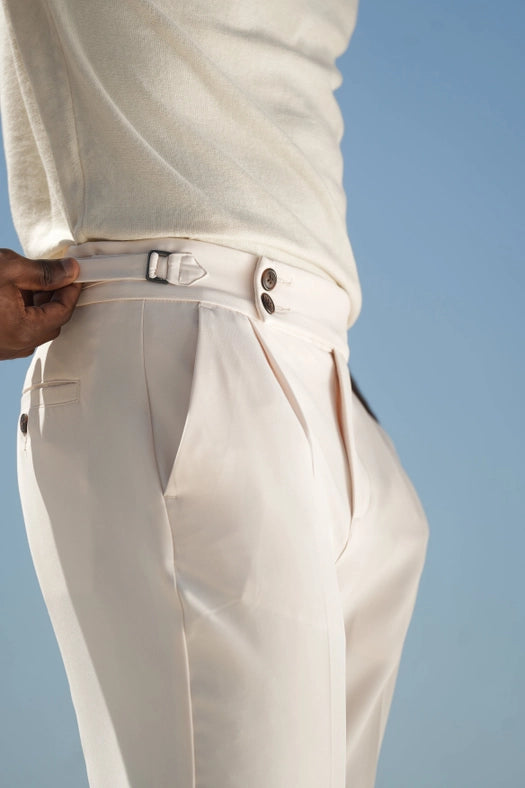 Expertly designed for both style and functionality, the Alpha Pants with Pearl Studs are a must-have addition to any wardrobe. The high-waisted design is not only elegant, but also features adjustable side buckles for a personalized and secure fit. With a sturdy zipper and three buttons for closure, these sophisticated pants are the perfect blend of fashion and practicality.