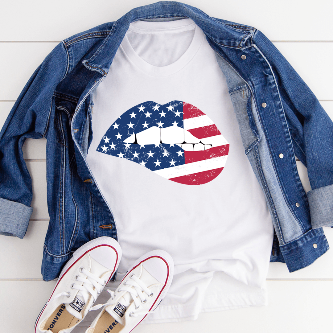 American Flag Lips T-Shirt-MerchMallow-White-S-Urbanheer