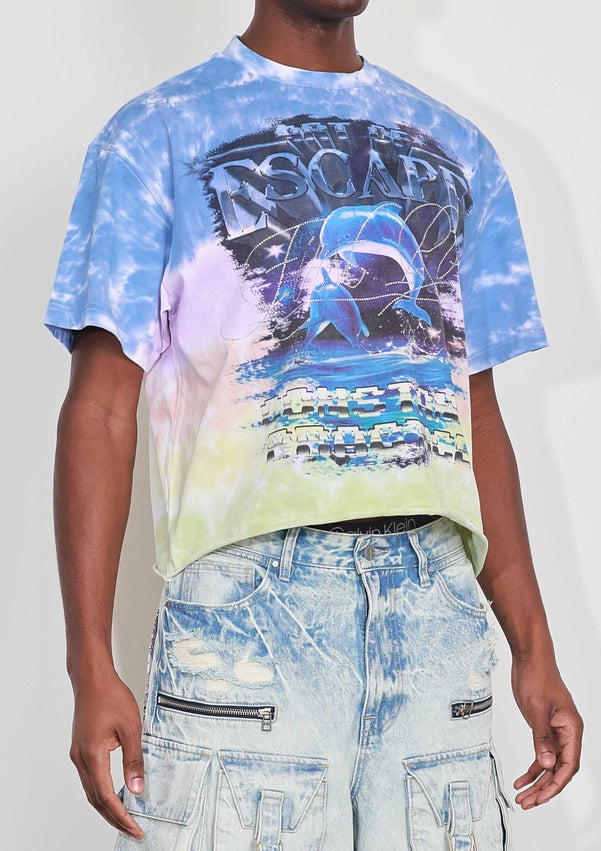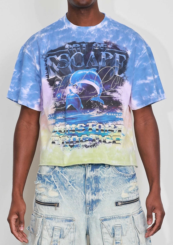 This Art of Escape Dolphins Cropped Tee features a heavy washed design, stone detail, and raw edge hem for a unique look. With a comfortable fit and trendy cropped style, this tee is perfect for any casual occasion. Its 100% cotton material ensures both style and comfort.