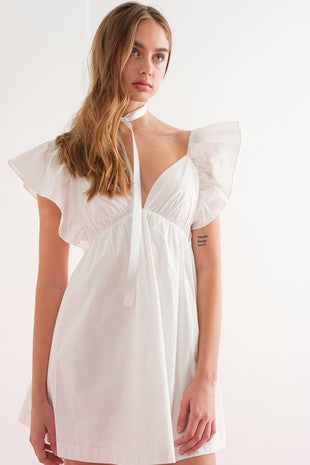 The Audrey Tie-Back Ruffle Mini Dress is a stylish and versatile option for any occasion. Made from 100% cotton, it features a flattering tie-back and ruffle design, with a length of 27 5/8 inches and a chest measurement of 15 1/4 inches. Perfect for all body types, this dress adds a touch of feminine charm with a ruffle width of 4 1/2 inches. Available in size S, it's a must-have for any fashion-forward wardrobe.