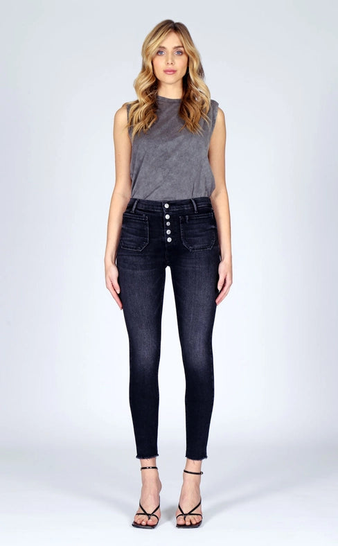 Elevate your denim game with the Ava Patch Pocket Skinny jeans! Made with luxurious Italian denim, these jeans offer a perfect fit and unique design with an exposed button fly and "What I Like About You" print. The high-rise and ankle-length make them versatile for any occasion. Wash cold and hang dry for long-lasting beauty.