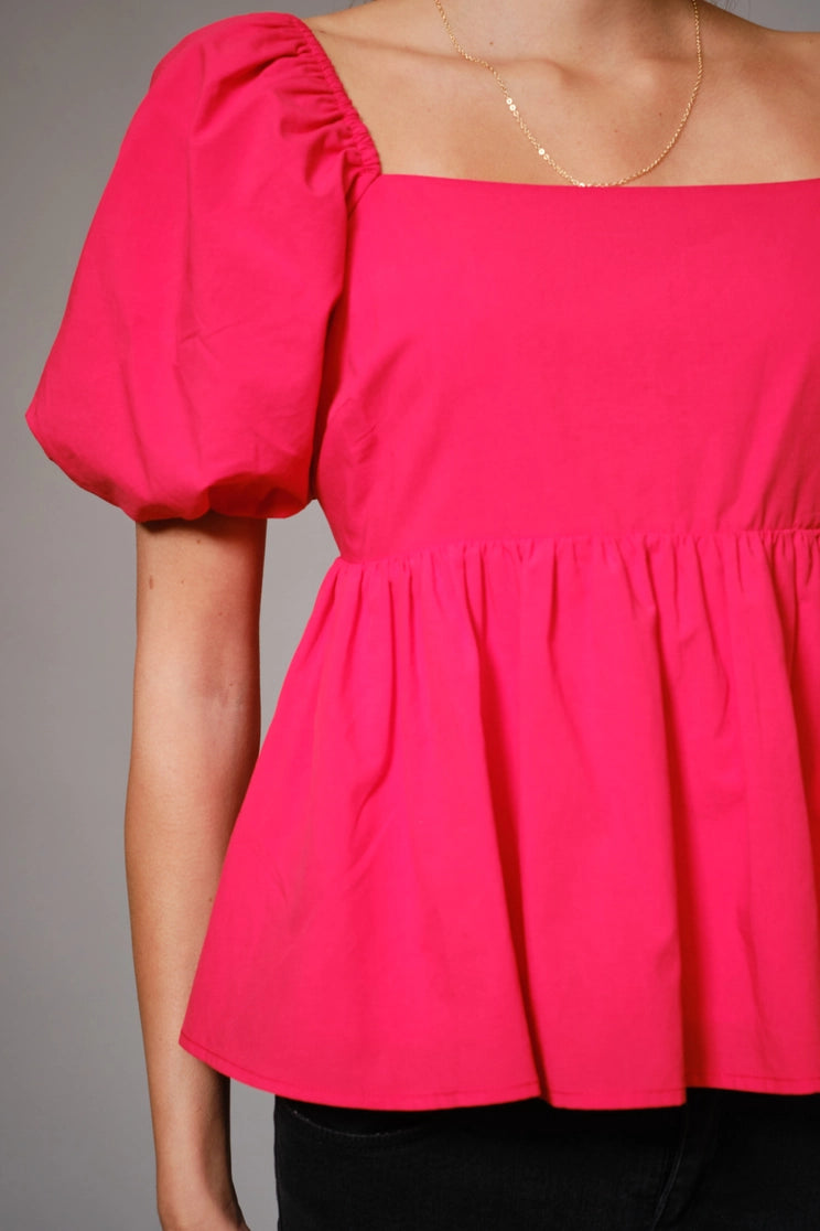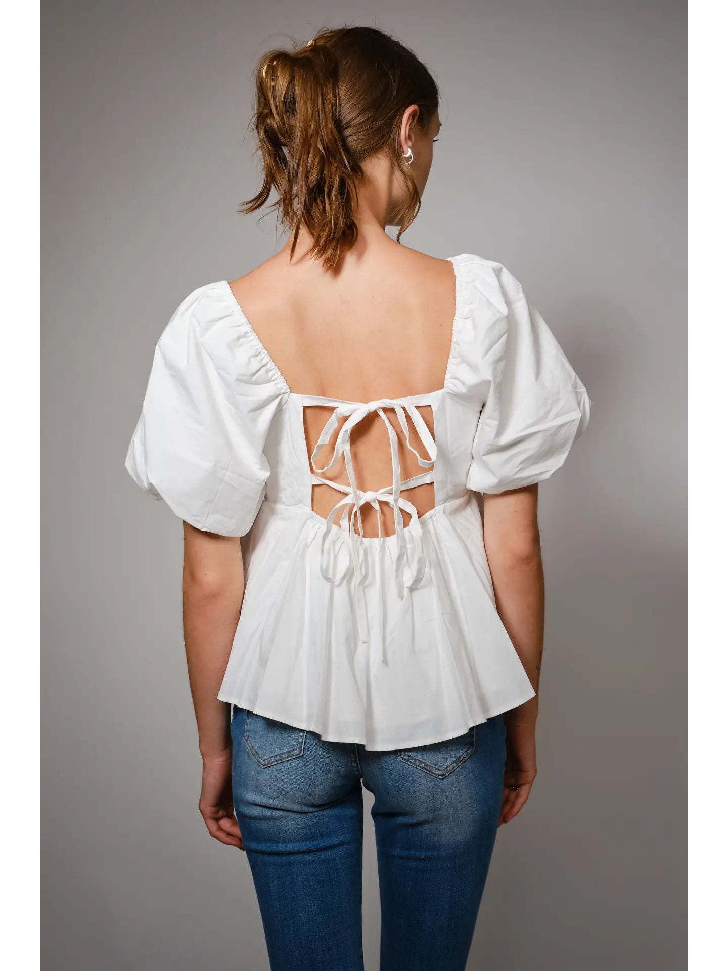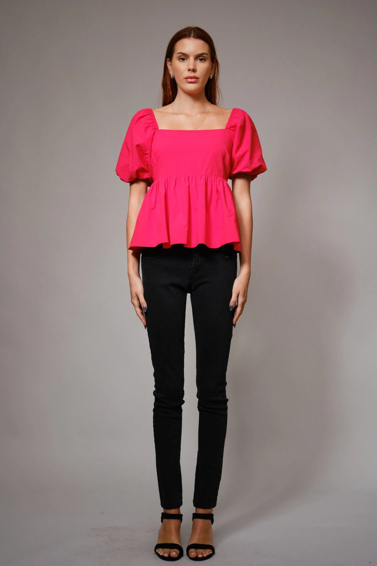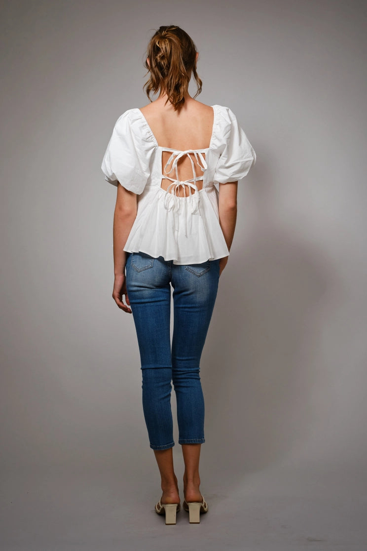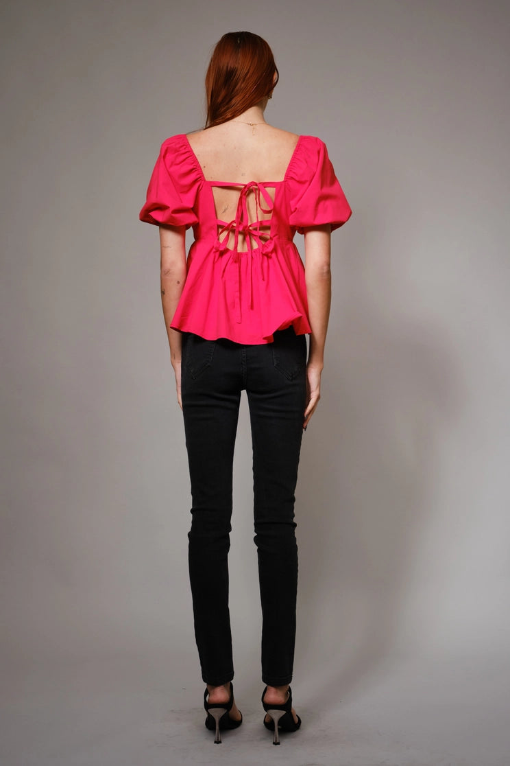 Back Tie Puff Sleeve Peplum Top