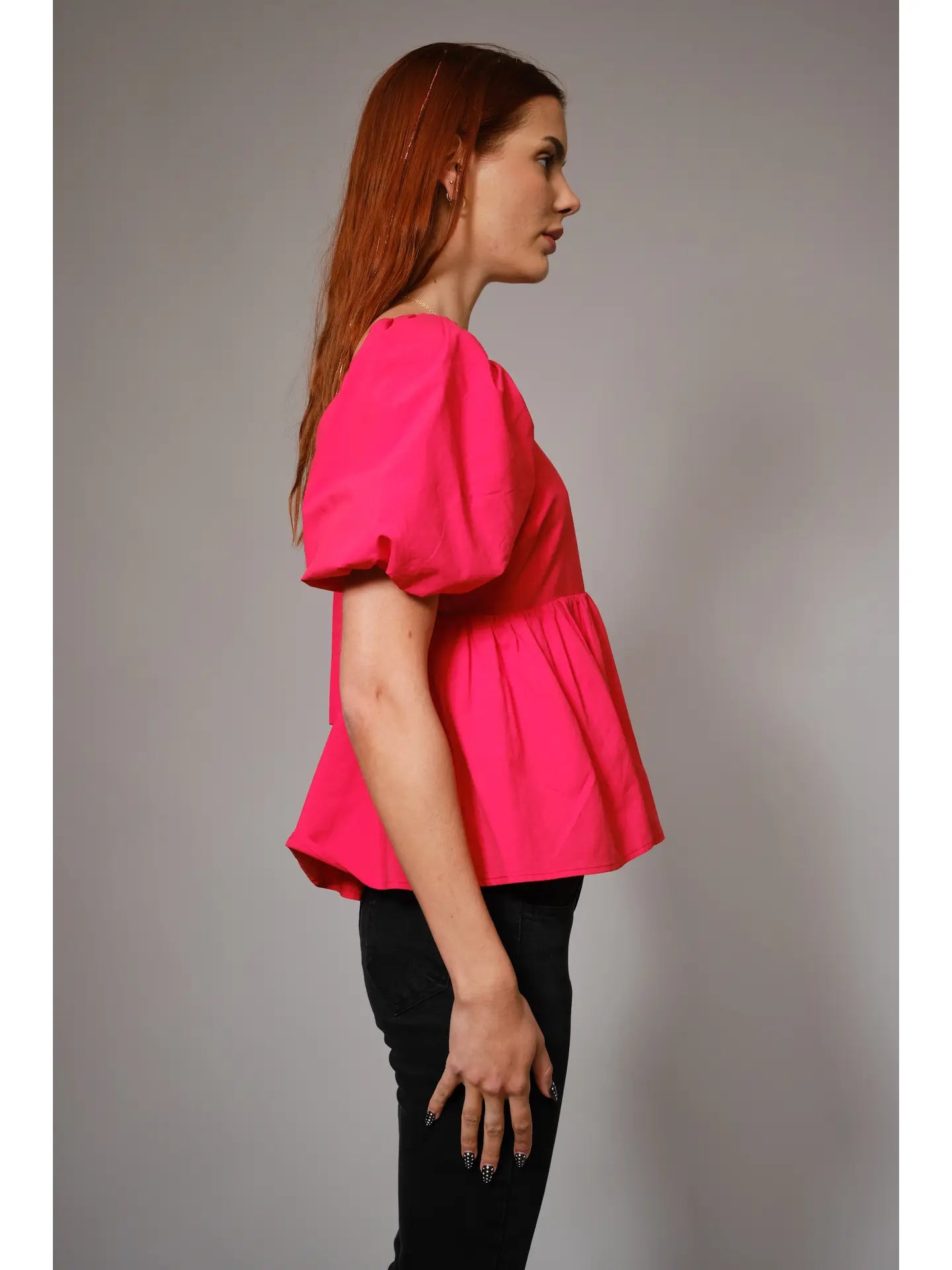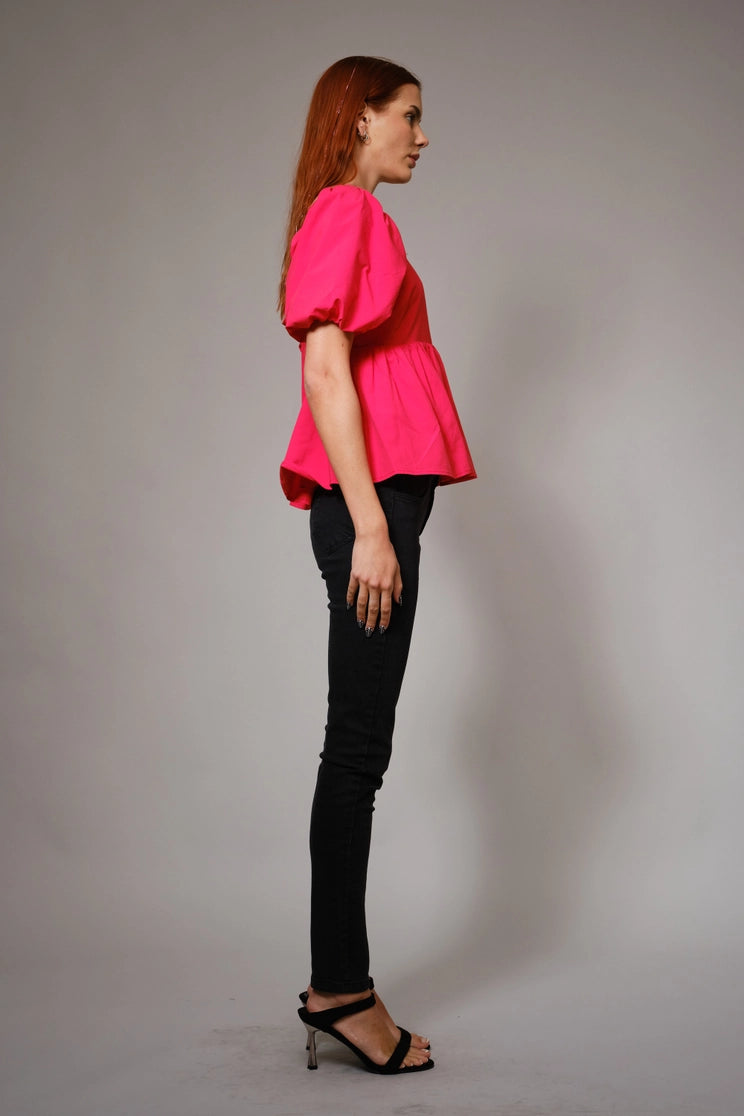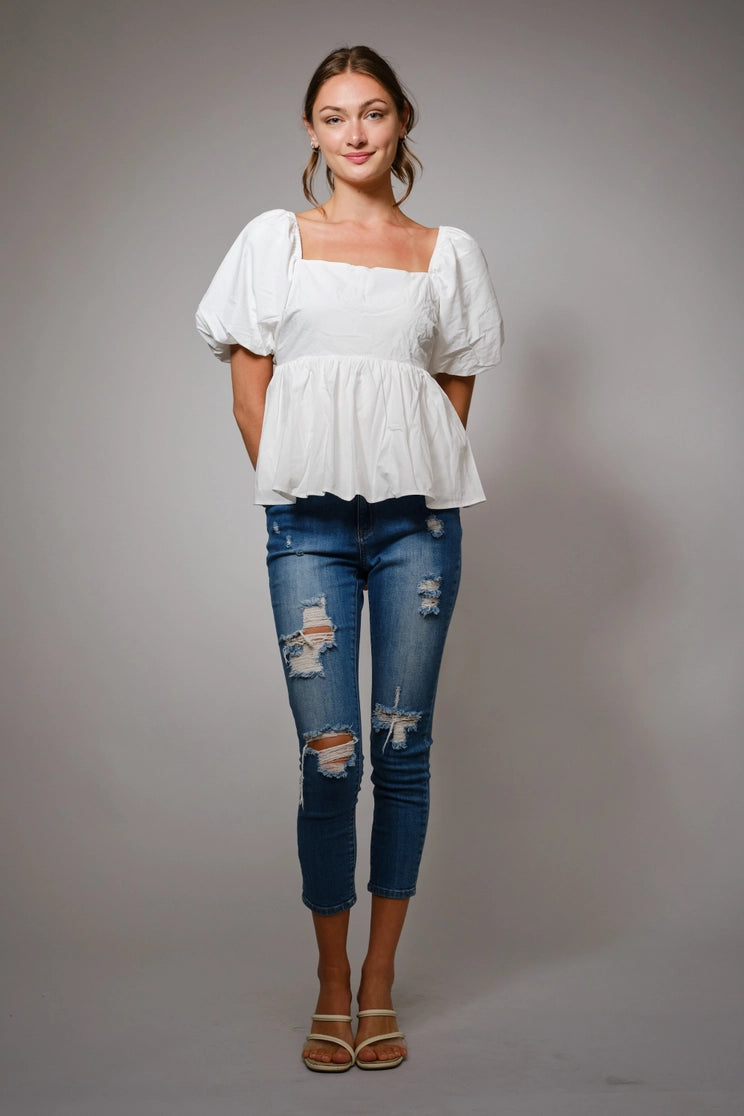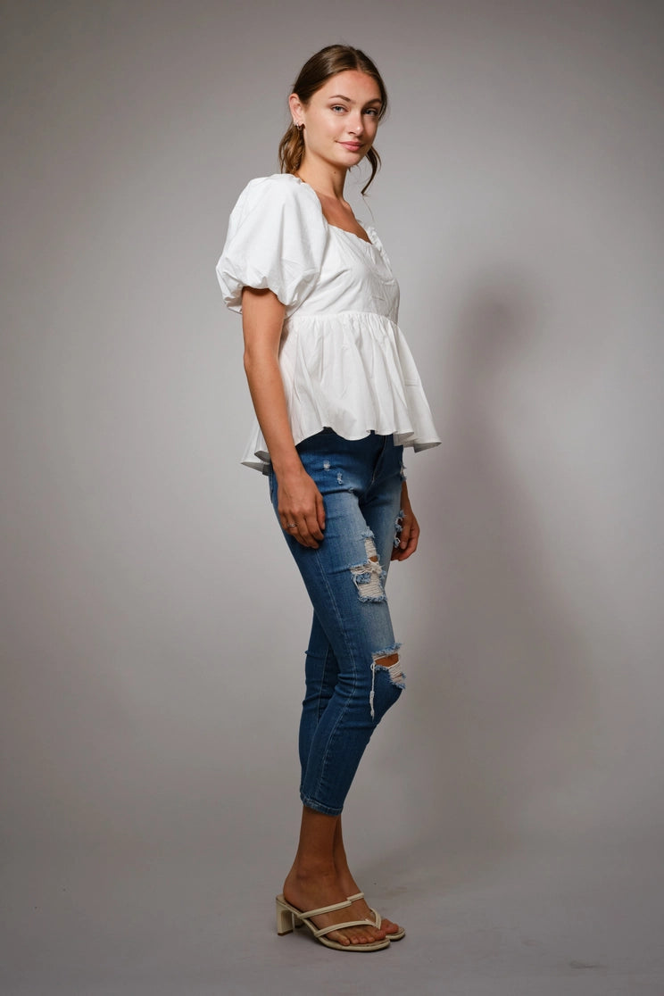 Back Tie Puff Sleeve Peplum Top