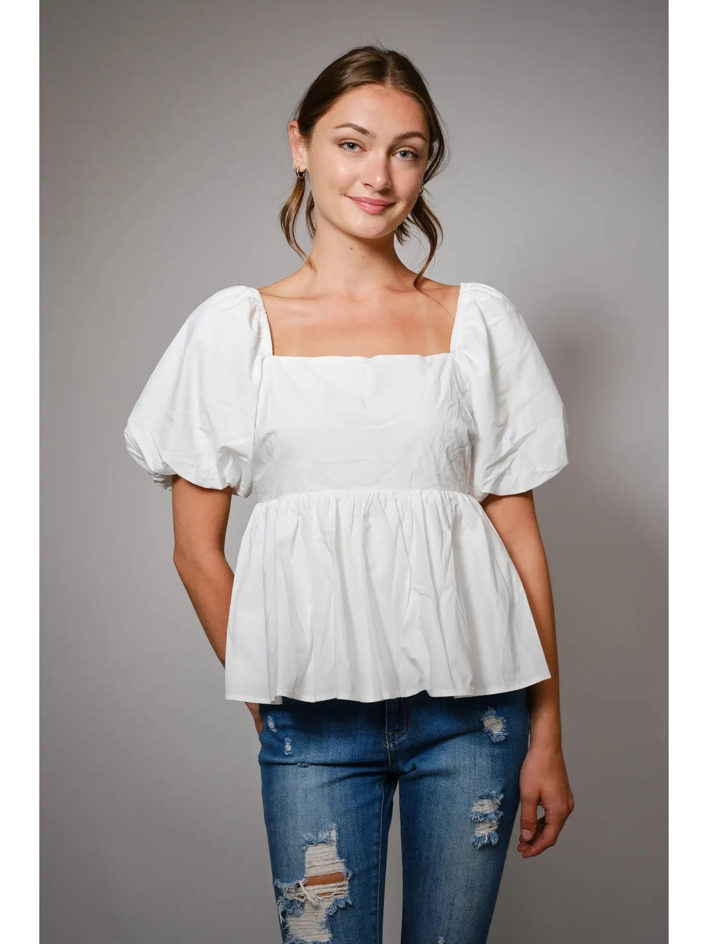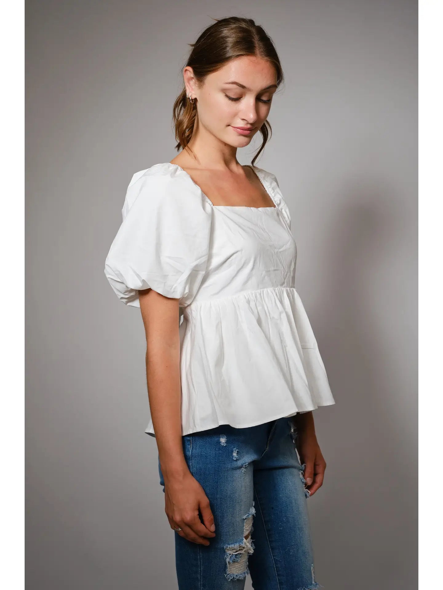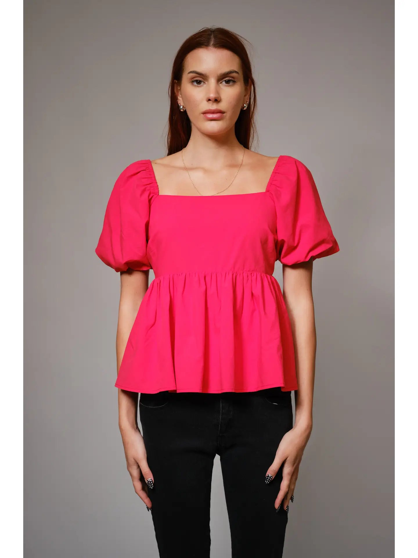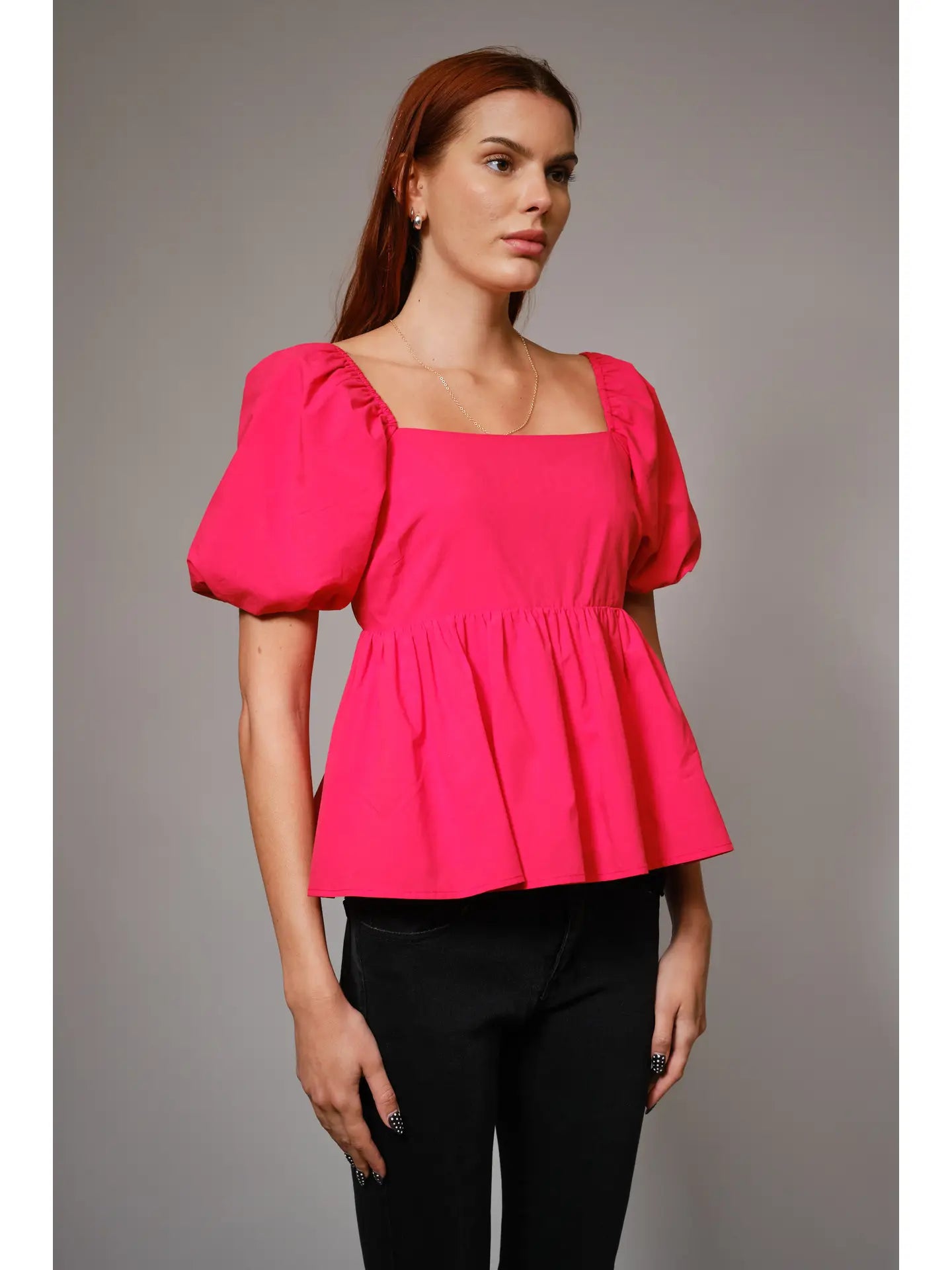 Back Tie Puff Sleeve Peplum Top