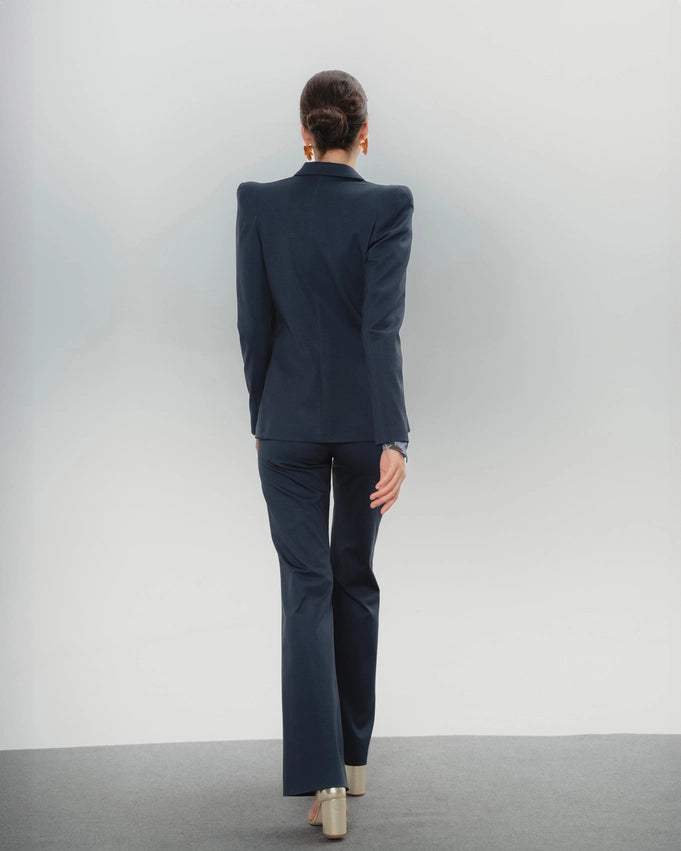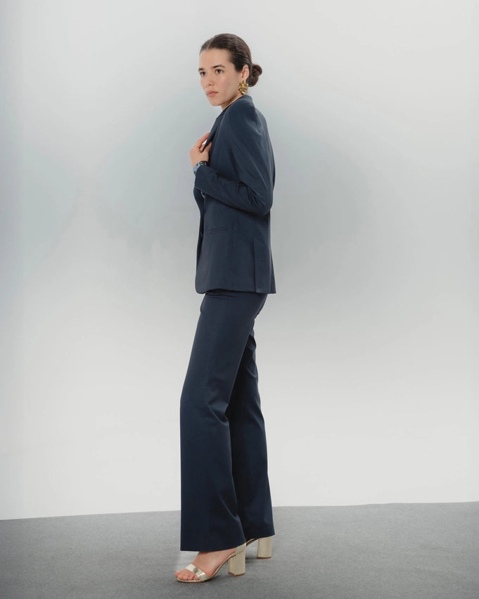 Update your winter wardrobe with the subtle elegance of the Barbara Pagoda Sleeve Blazer. This tailor jacket features a waisted silhouette and long pagoda sleeves, providing a sophisticated and stylish look. Lined front buttons and eyelet pockets offer functionality and versatility. Handcrafted in Spain using high-quality materials, this blazer is the perfect addition to your wardrobe. Visit our Suits collection for a range of standout options.