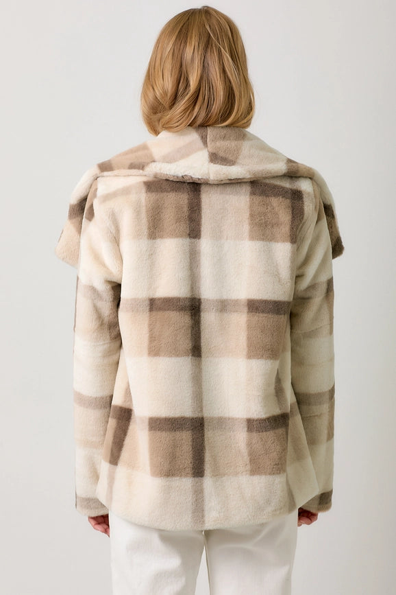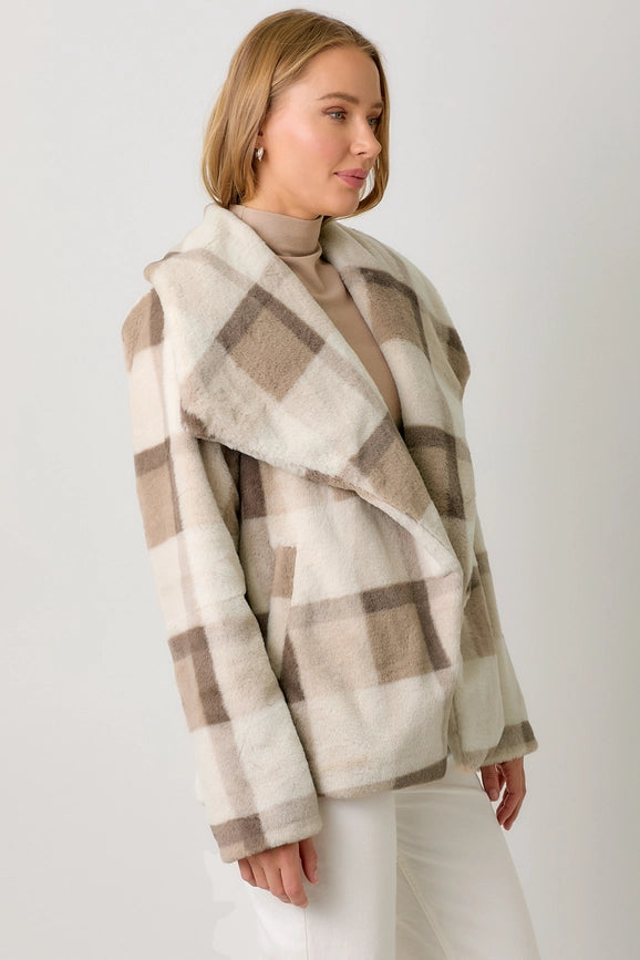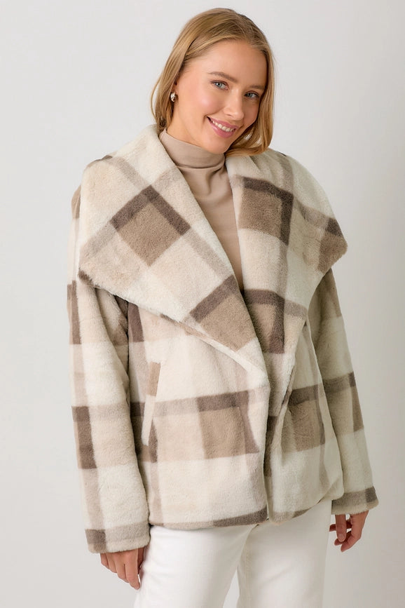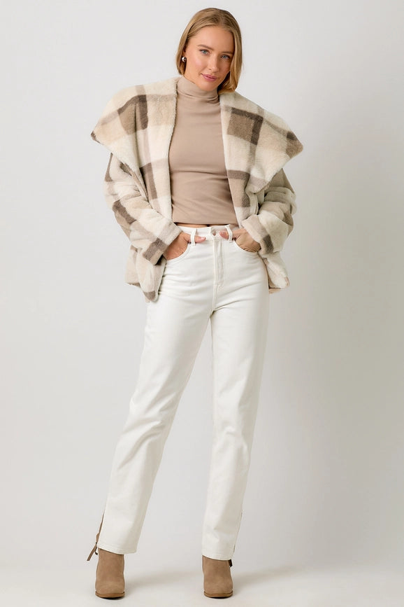 Big Lapel Collar Fur Jacket Ivory/Stone