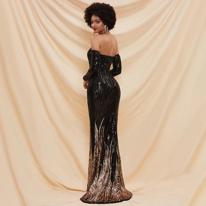 Black Dress Women Tube Top Off-Shoulder Annual Party Host Sequined Small Trailing Evening Dress Formal Gown-Dress-Chicurb Wholesale-S-Black-Urbanheer