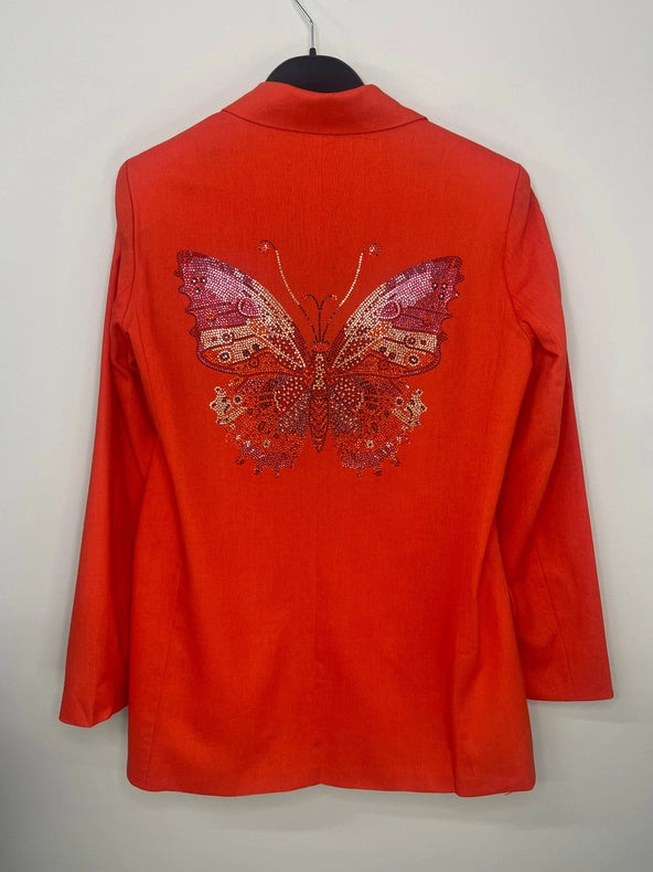 Transform your wardrobe with our Linen Orange Butterfly Blazer. Made from high-quality linen, this blazer features a stunning crystal butterfly design. Perfect for any occasion, it effortlessly combines comfort and unique style. Upgrade your look and stand out from the crowd.
