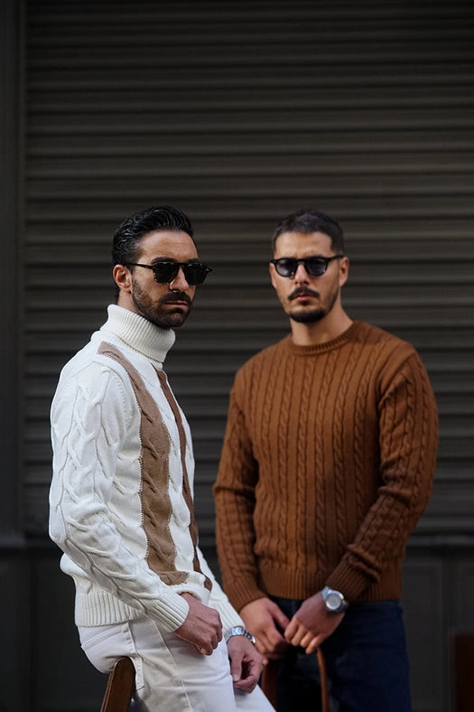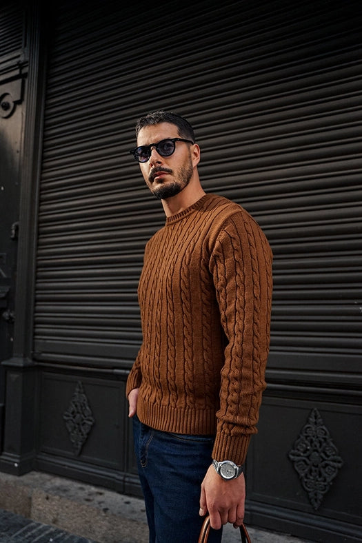 Introducing the Brown Jumper - a cozy ribbed sweater that adds subtle texture and versatility to your wardrobe. Made with classic cable knit, it effortlessly combines with any outfit, from casual to elegant. Challenge trends, enhance your style, and embrace all body types with this versatile sweater.