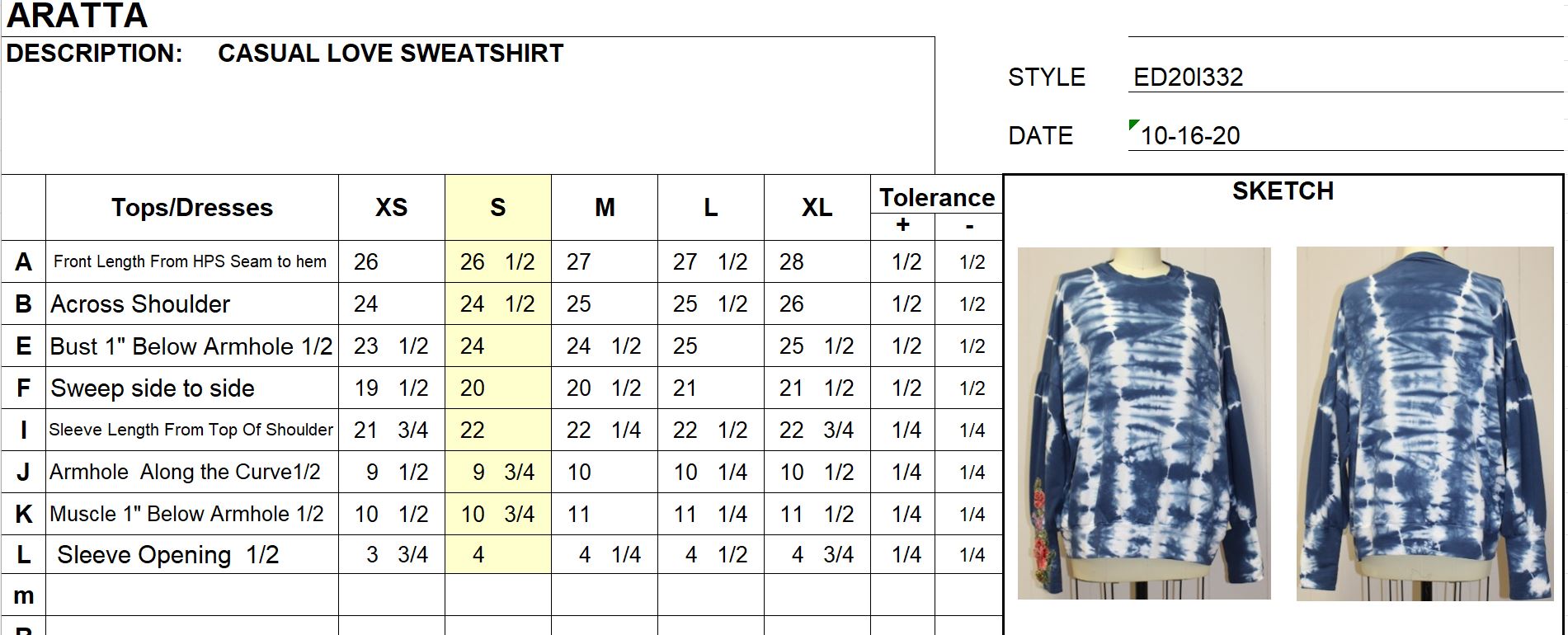 The Casual Love Sweatshirt is the perfect combination of style and comfort. Its tie dye embellishment adds a trendy touch while the gray wash gives it a versatile look. Made with 100% cotton, this sweatshirt is not only fashionable but also easy to care for with dry clean instructions. Designed with details in mind, it's no wonder this sweatshirt is a favorite of our model, who stands at 5'8" and wears a size S with measurements of 32" bust, 24" waist, and 33" hip. Upgrade your casual wardrobe with this must-have piece.