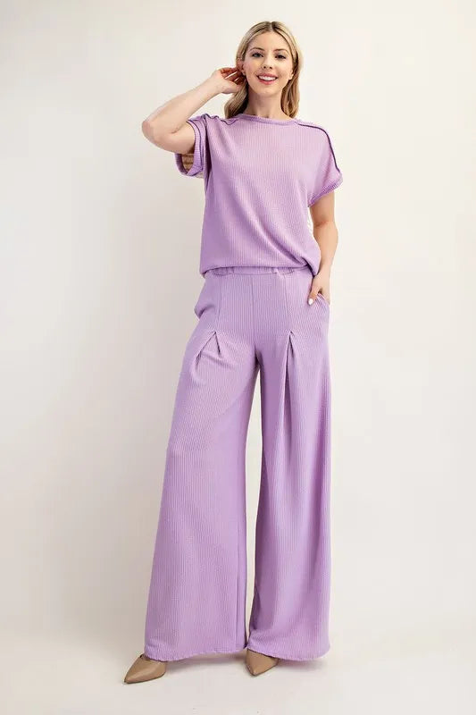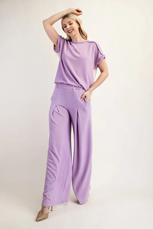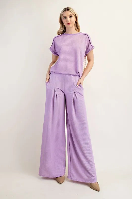 Celeste Full Size Textured Wide-Leg Pants with Pockets Plus Size