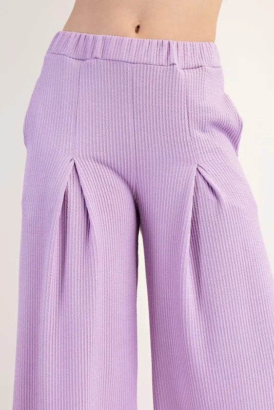 Step out in style with these Textured Wide-leg Pants that come with convenient Pockets. The unique texture adds depth and interest to your outfit, while the wide-leg design offers a comfortable and flattering silhouette. The pockets add functionality and a touch of practicality to these fashionable pants. Pair them with a tucked-in blouse or a fitted top for a chic and sophisticated look. Stay effortlessly stylish while keeping your essentials close at hand with these versatile wide-leg pants.