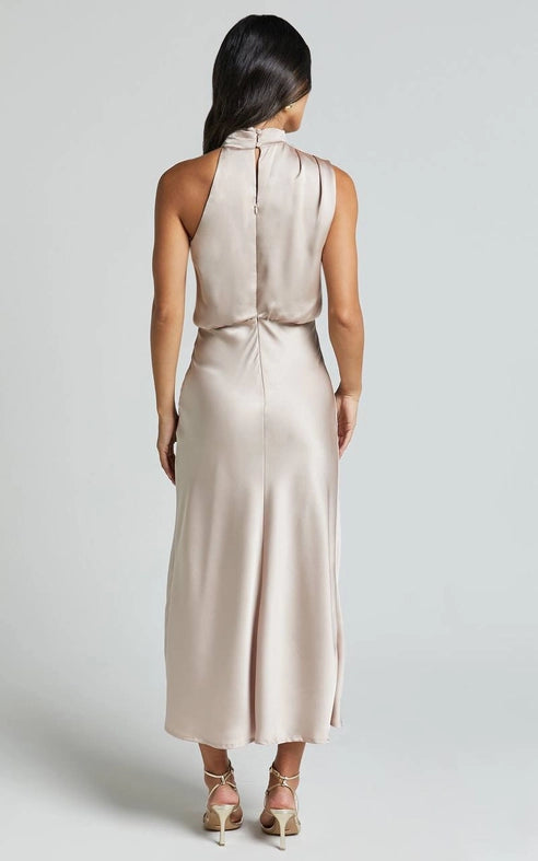 The Champagne Maxi Dress offers lasting beauty and quality with its easy care instructions. Simply machine wash on a gentle cycle with mild detergent, hang dry or use a low-heat dryer setting for best results. Iron inside out on a low to medium heat setting to maintain its pristine look. Store in a cool, dry place away from direct sunlight for long-lasting wear.