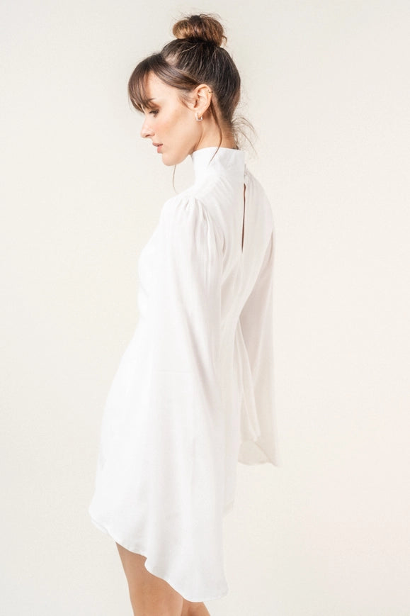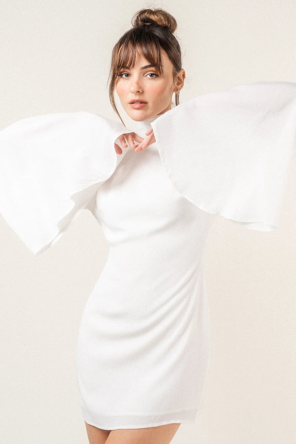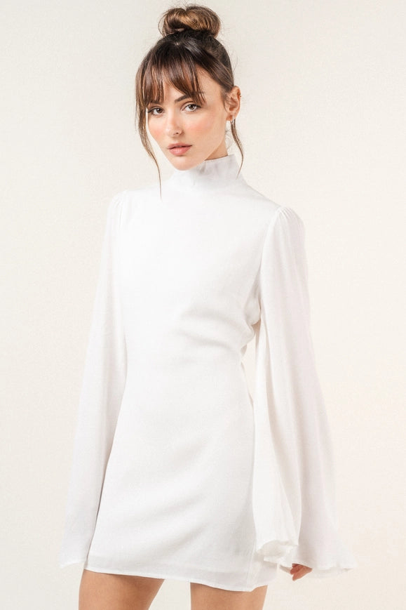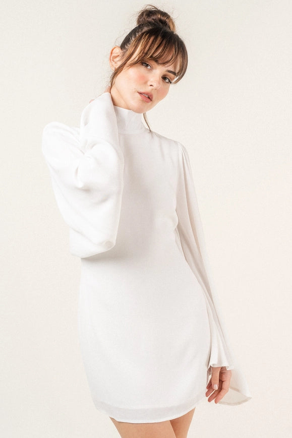 Chic Mock Neck Dramatic Flared Sleeve Mini DRESS