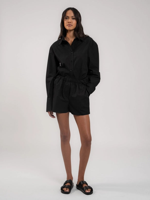 Experience the ultimate comfort and style with our Christina shorts. Inspired by menswear boxer shorts, these shorts feature a relaxed silhouette that is perfect for the summer. The faux front fly and elastic waistband add a touch of sophistication, while the side pockets provide convenience for everyday wear. Stay cool and stylish with Christina.
